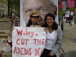 Workers are very clear: they demand that adidas pay the $825,000 that they are legally owed and eliminate the anti-union blacklists in other adidas factories in the region. SLAC's local campaign has echoed this demand, and further demanded that UW Chancellor John Wiley take action on his promise to hold adidas responsible for the crimes committed against the Hermosa workers.