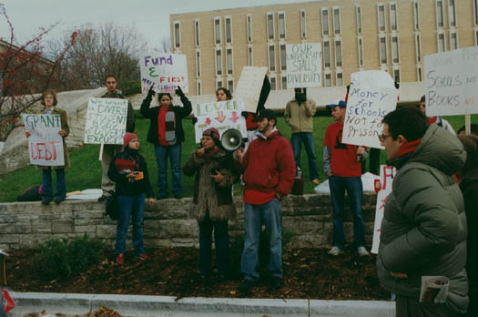 Students have joined together with the TAA and UFAS to push for their common goal: a low-cost, high-quality University of Wisconsin that is accessible to all people and treats its employees with respect. This growing coalition, which also includes students and faculty at UW-Milwaukee and UW-Oshkosh, has already protested Governor Doyle and the state legislature and has gathered over 1,500 signatures of support, including Congresswoman Tammy Baldwin, Madison Mayor Dave Cieslewicz, and - the only student on the Board of Regents - Beth Richlen. Who: The emerging coalition fighting for equal access to education. Includes the Student Labor Action Coalition, ASM, MultiCultural Student Coalition, Black Student Union, Green Progressive Alliance, WISPIRG, Poverty Action Network, MEChA, the Teaching Assistant Association (AFT-WI #3220), and United Faculty and Academic Staff (AFT-WI #223); this is the same group that led the protest at the Capitol on October 8th, 2004