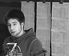 Surrounded by petitions of supportive students, UW-Madison sophomore Joel Feingold of the Student Action Labor Coalition addresses tuition concerns about Gov. Jim Doyle´s budget.