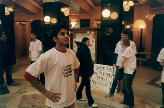 - Students to fast at Capitol - The Daily Cardinal, March 7, 2005 and picture from March 8, 2005